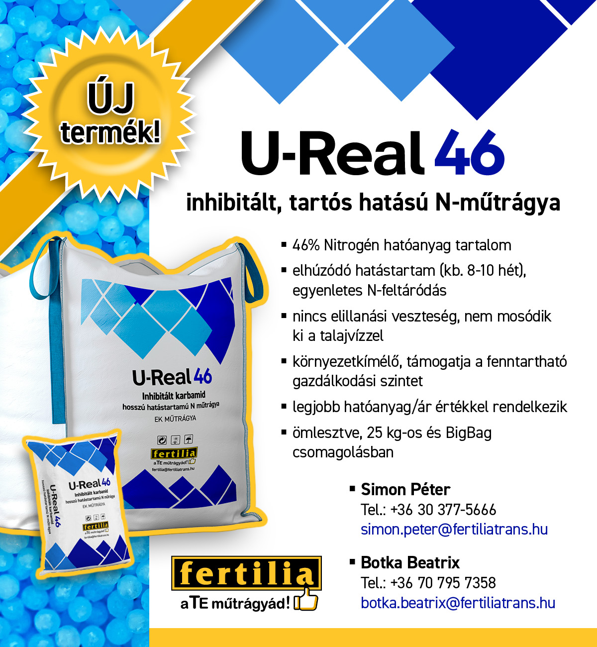 - 46% Nitrogén hatóanyag tartalom